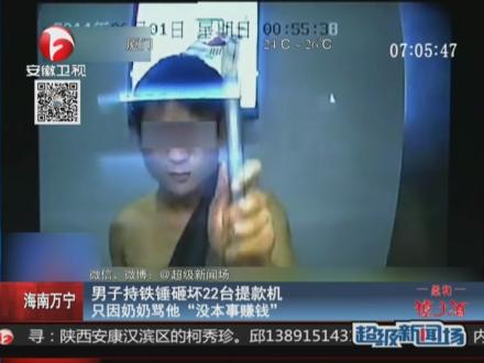 万宁男子砸坏22台提款机 因奶奶骂他“没本事赚钱”