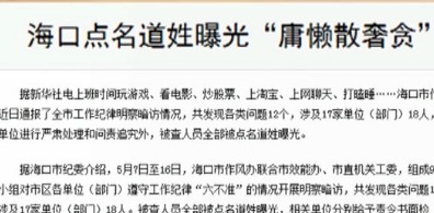 海口点名道姓曝光18名“庸懒散奢贪”