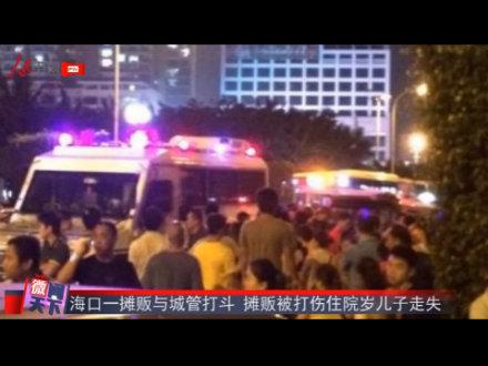 海口一摊贩被城管打伤住院岁儿子走失