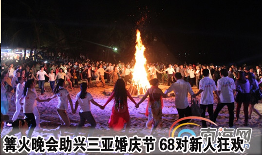 篝火晚会助兴三亚婚庆节 68对新人与游客狂欢