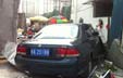 海口:小轿车撞塌路边围墙 疑刹车失灵所致