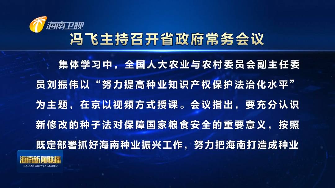 冯飞主持召开省政府常务会议 研究部署推进海南种业振兴等工作