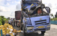 三亚:大货车翻车 两千多箱饮料散落一地
