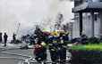 海南三叶医药物流商城仓库突发大火施救现场
