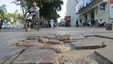 三亚解放路人行道地砖破损 近期恐难修复