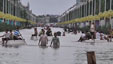 琼海市区车道变河道 市民划船出行