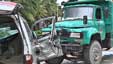 海口:警车爆胎 闯护栏撞上货车