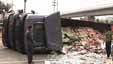 大货车拐弯玩“漂移” 车上陶瓷洒满地