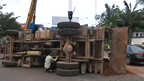 琼山华侨中学门前 货车翻倒在路中间