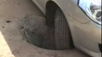 海口琼山区小轿车轮深陷沙井窟窿