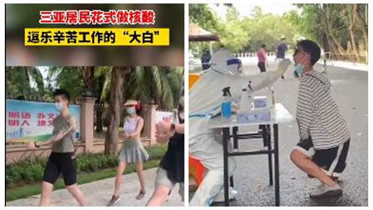 抗疫现场 | 三亚居民花式做核酸,逗乐辛苦工作的“大白”
