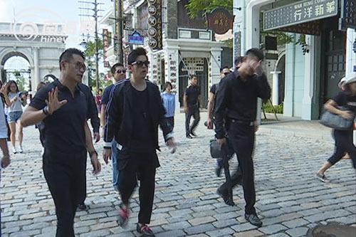 周杰伦一袭黑衣亮相冯小刚电影公社 引众多粉丝围观尖叫