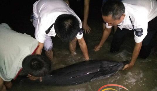 文昌清澜海滩发现受伤海豚 或因台风搁浅已被收救