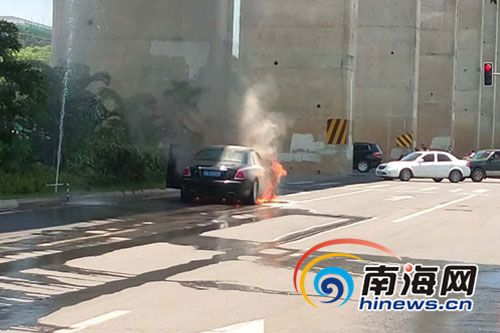 海口南海大道一劳斯莱斯轿车发生自燃 未有人员伤亡