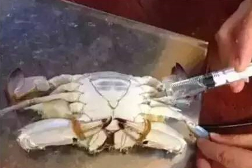 女子实验给螃蟹注射橙色水浆 刷爆海南朋友圈