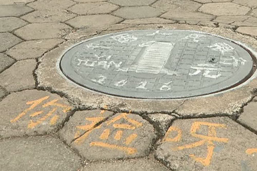 海南大学井盖涂鸦人民币引争议 回应:没必要过分解读