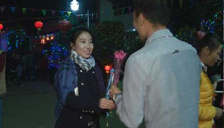 海口换花节花卉大世界会场:猜灯谜换鲜花 许下一年好愿望