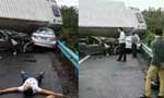 海南东线高速处20公里3车相撞 两小车被压受损严重