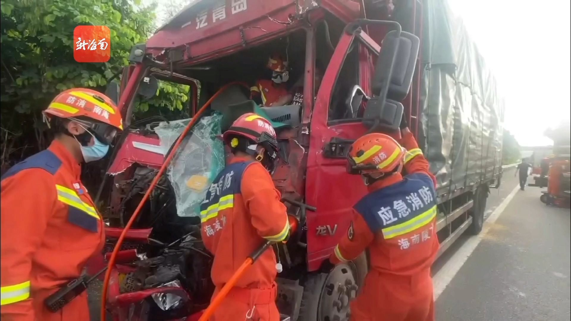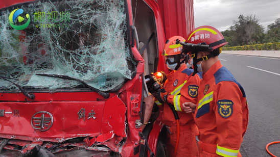 椰视频 | 两车追尾一人被困 陵水消防紧急救援