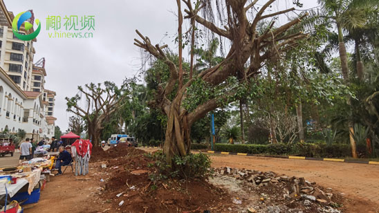 椰视频 | 6棵大榕树被拔高40厘米 临高衍宏海港小镇小区物业回应:为了美化改造小区