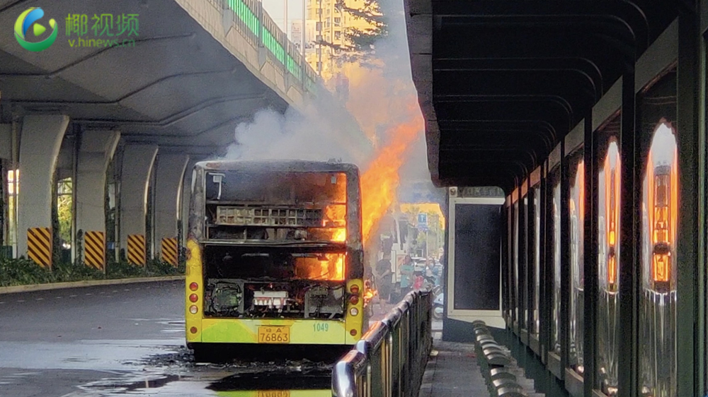 椰视频 | 海口一公交车在海秀路上异常起火 所幸司机及时疏散群众避免伤亡