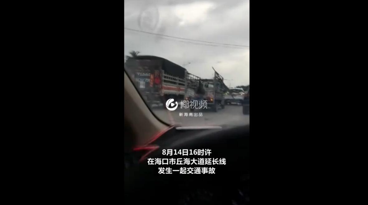 椰视频 | 惊险!小货车突然急刹车所拉钢管往前滑捅破前车玻璃 幸好无人受伤