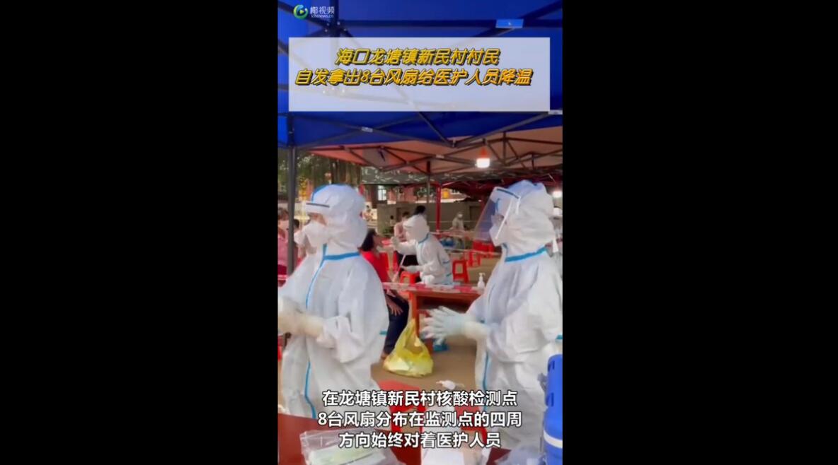 椰视频 | 海口龙塘镇新民村村民自发拿出8台风扇给医护人员降温