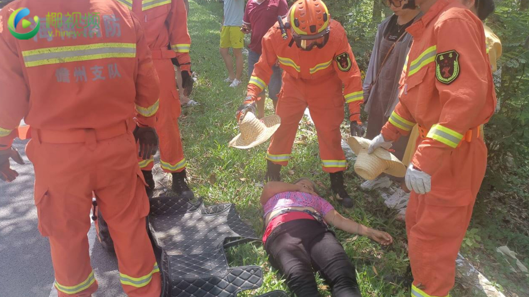 椰视频 | 小轿车撞树一人被困 儋州消防紧急救援
