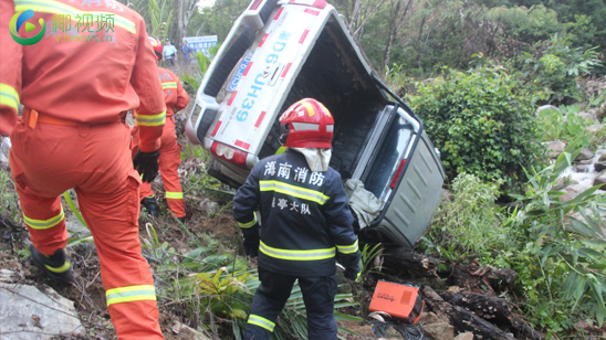椰视频|保亭:雨后轿车侧翻一名人员被困 消防火速救援