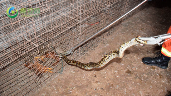 椰视频|蟒蛇溜进居民家鸡笼偷鸡吃 洋浦消防员将其抓捕放生