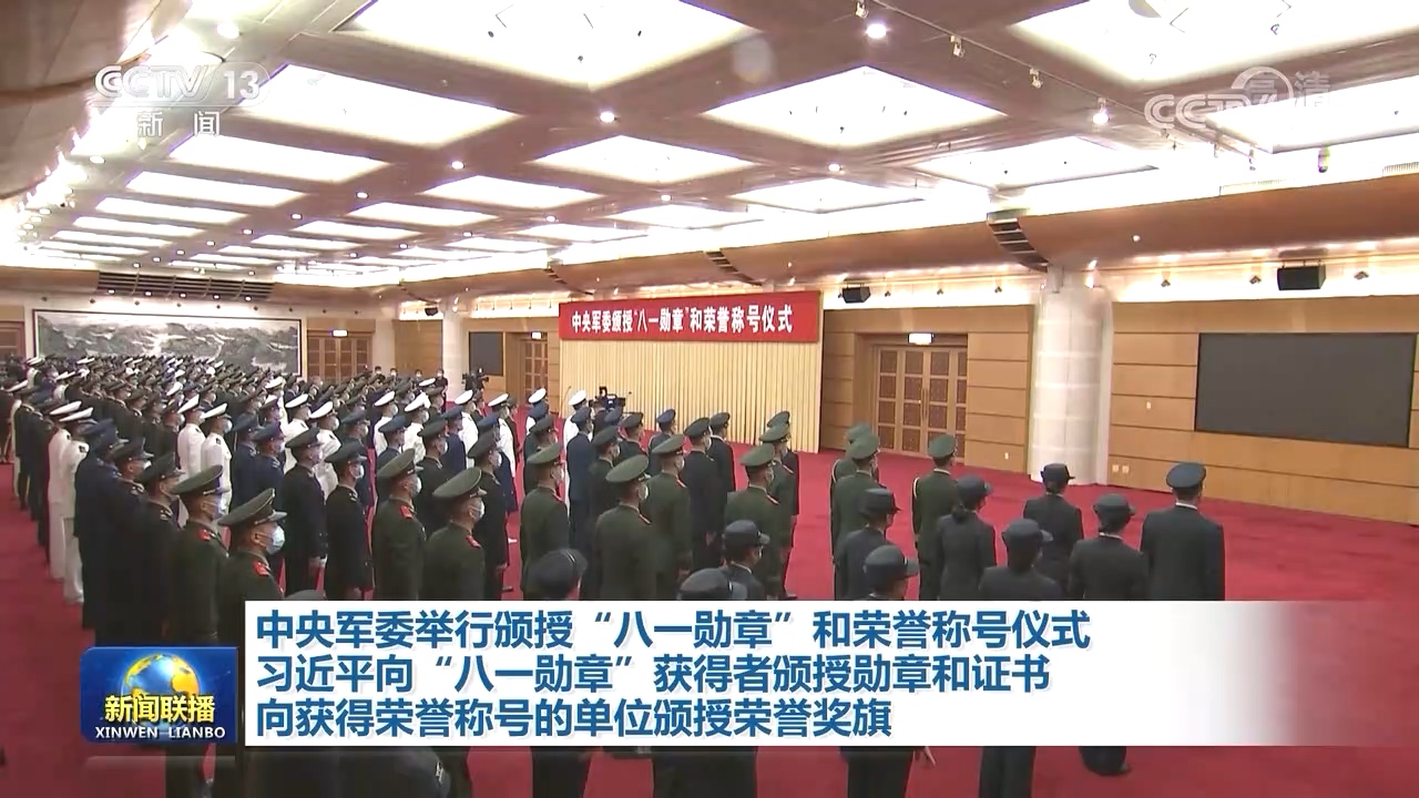中央军委举行颁授“八一勋章”和荣誉称号仪式 习近平向“八一勋章”获得者颁授勋章和证书 向获得荣誉称号的单位颁授荣誉奖旗
