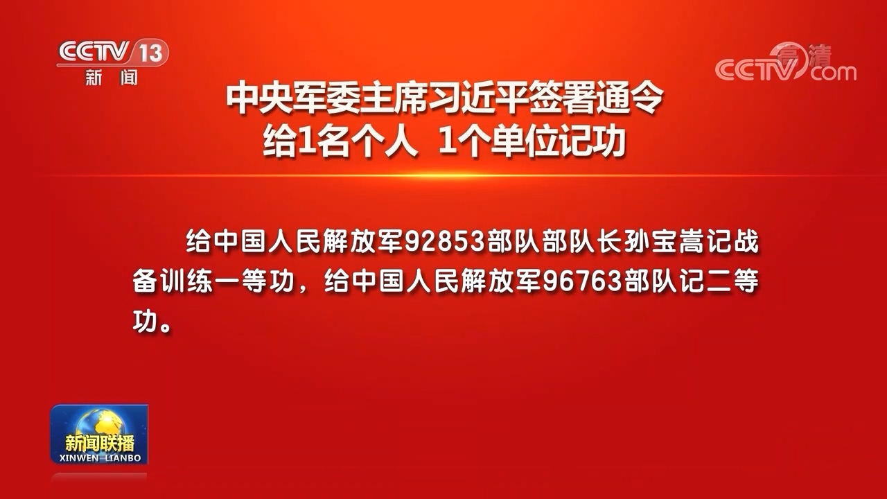 中央军委主席习近平签署通令 给1名个人 1个单位记功