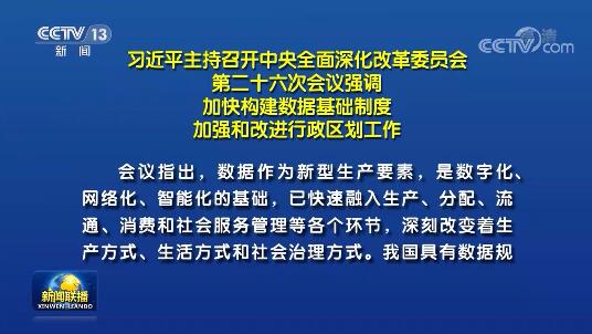 习近平主持召开中央全面深化改革委员会第二十六次会议强调 加快构建数据基础制度 加强和改进行政区划工作