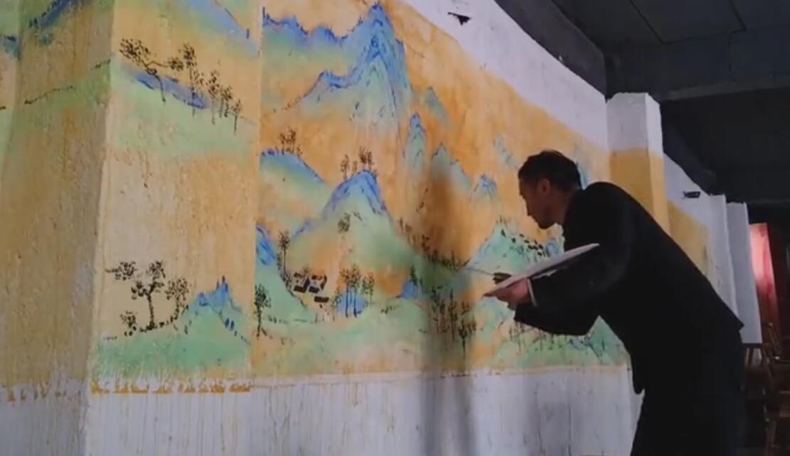 为了引导学生感悟国画魅力 老师在食堂画出12米《千里江山图》