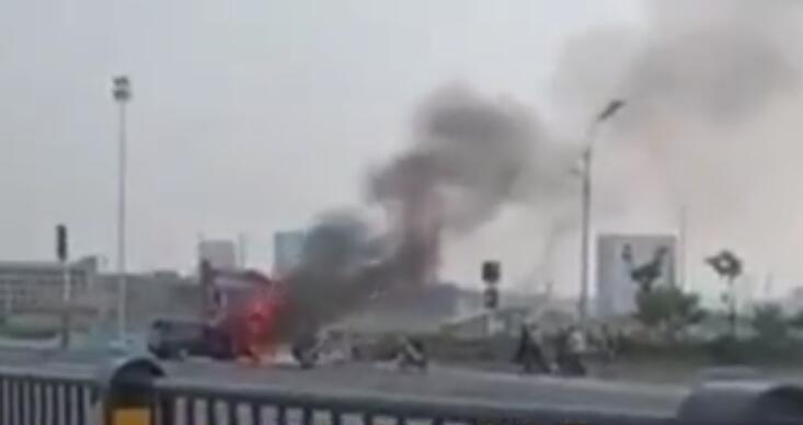 私家车追尾起火 夫妇俩光脚拎灭火器狂奔扑救