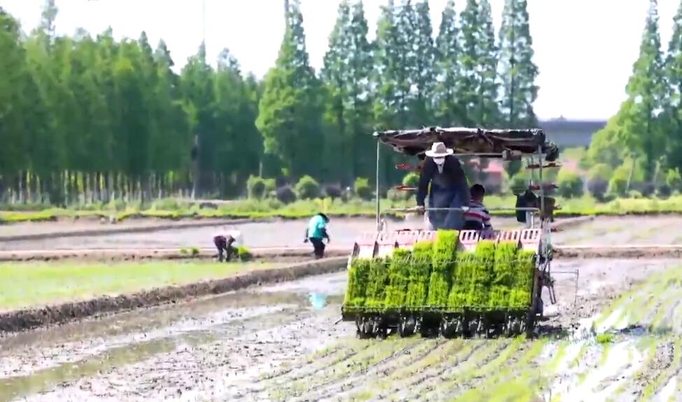上海松江万亩良田迎早稻插秧播种 防疫生产两不误