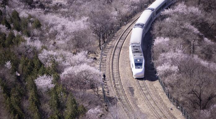 徜徉花海!像这列火车,走进春天!