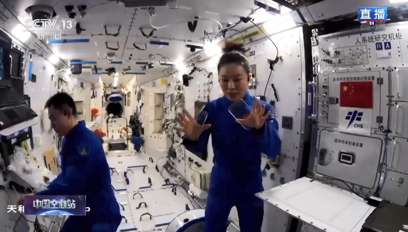 王亚平化身太空“建筑师” 用液体搭了一座桥