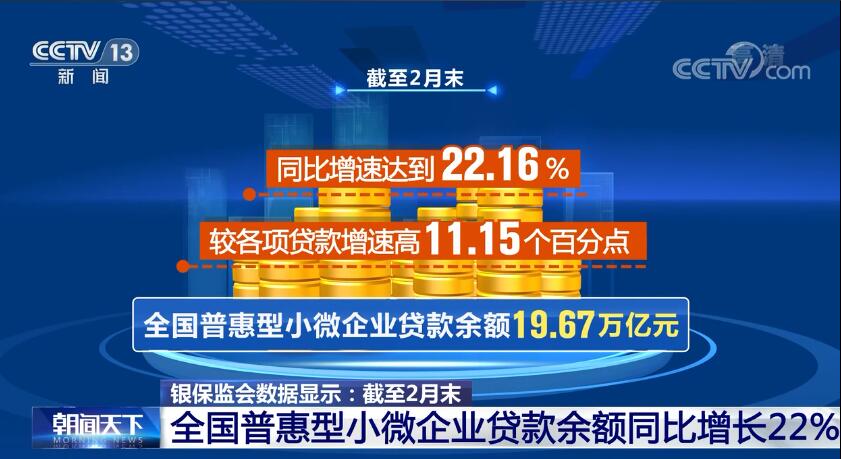 截至2月底 全国普惠型小微企业贷款余额19.67万亿元 同比增长22%