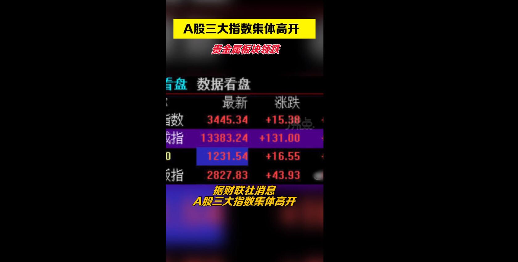 视频 | A股三大指数集体高开 贵金属板块领跌