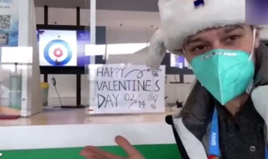 俄罗斯记者与冬奥志愿者比心:中俄相加等于爱
