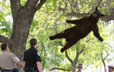 黑熊闯进校园被麻醉枪击中后从树上掉下