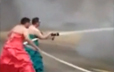 美国敬业消防员穿晚礼服公路灭火