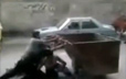 实拍叙利亚青年街头推铁箱挡冷枪猛射