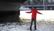 魔术师在泰晤士河上表演水上漂 令人称奇