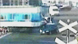 实拍火车拦腰撞上闯行铁轨轿车