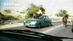 以色列:惊马公路狂奔踩踏汽车
