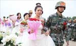 阅兵方队为战士补过集体婚礼 官兵集体求婚