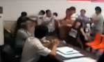 河北两村官开会抢话筒引群殴现场 黑衣女抢眼