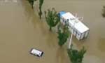 航拍南京暴雨致内河漫堤村庄被淹 私家车遭没顶